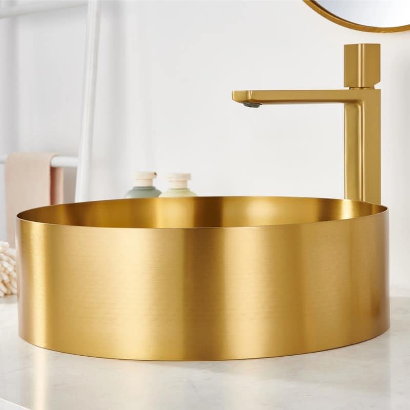 - Corrosion Proof: Unlike real brass or copper sinks that tarnish and turn green (patina) over time, our PVD Gold finish maintains its brilliance permanently without requiring polishing.