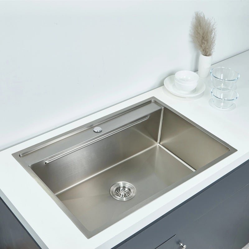 When standard sinks aren’t wide enough to cover your old countertop cutout, our 750x520mm Extra-Wide Topmount Sink is the answer. With a generous 20.5-inch (520mm) width, this model provides superior coverage and a substantial, high-end presence on deeper countertops.