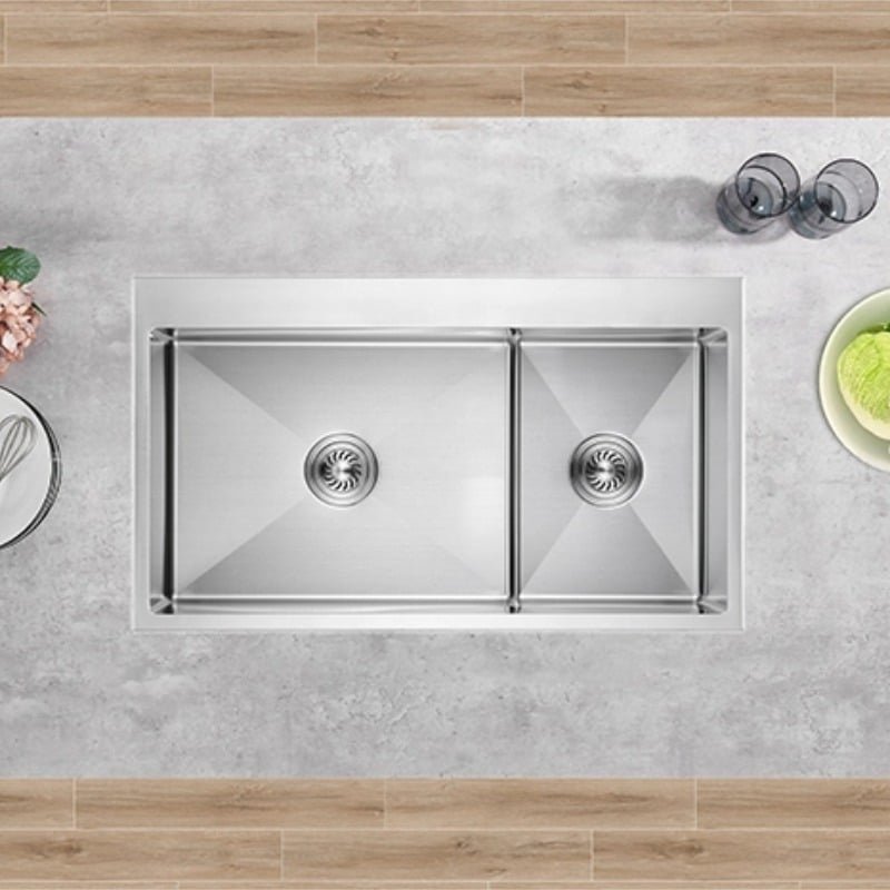 Upgrade your kitchen with the most versatile sink configuration on the market. Our 33″ x 20″ Topmount 60/40 Double Bowl Sink is designed to fit standard existing cutouts, making it the ultimate choice for kitchen remodeling projects. It combines the ease of drop-in installation with the premium look of a handmade sink.