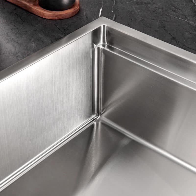 • R10 Radius Corners: The tight 10mm rounded corners offer a sleek, architectural look while remaining easy to wipe clean compared to zero-radius sinks.